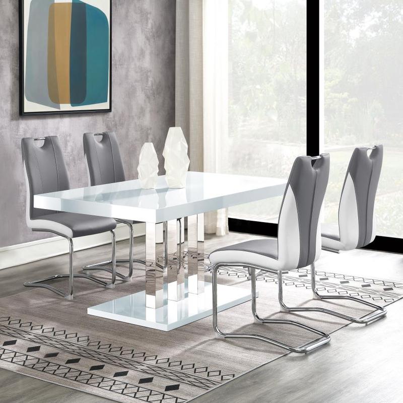 gloss white & chrome with white / grey chairs