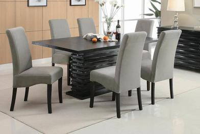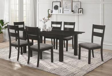 black wood finish & grey chairs